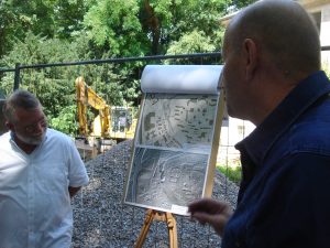 Stefan Ebeling und Joachim Buck informieren die Öffentlichkeit über den geplanten Abriss des Gartenhauses im Königswieser Park 2019